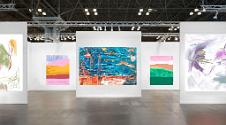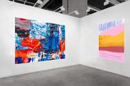 Three person booth, highlighting painting as a medium: Hazel Lutz, Adriel Nguyen, and Luis Tyler.