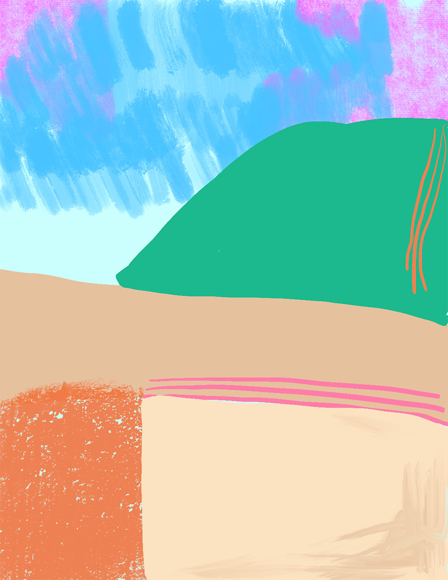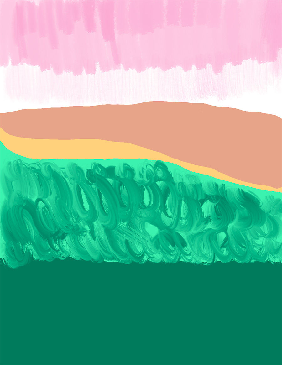 Nguyen explored the trails by herself reading the history of the land and drawing local plants and animals she came across. It was a misty morning, and not many people where out there with her. She stopped for lunch, a picnic she brought, and painted some sketches that would later become this piece.